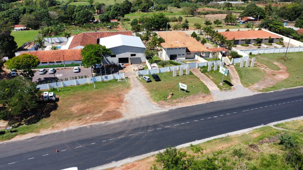 Ambientes equipados com piscina, academia, campo e quadra para esportes, refeitório, além de uma área ampla.